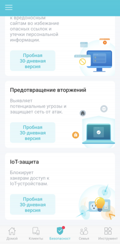 | Защита HomeShield | защита IoT-устройств в реальном времени, блокировка вредоносных сайтов, защита от вторжения в порт, защита от DDoS-атак, сканер домашней сети |