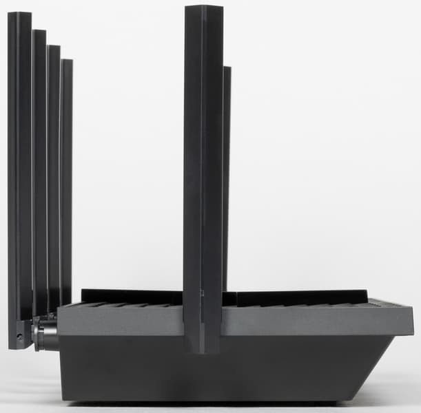 На правой и левой боковых панелях установлены две антенны, форма и размеры которых идентичны тем, которыми оснащен роутер TP-Link Archer AX72, об устройстве которого мы рассказывали в начале материала.