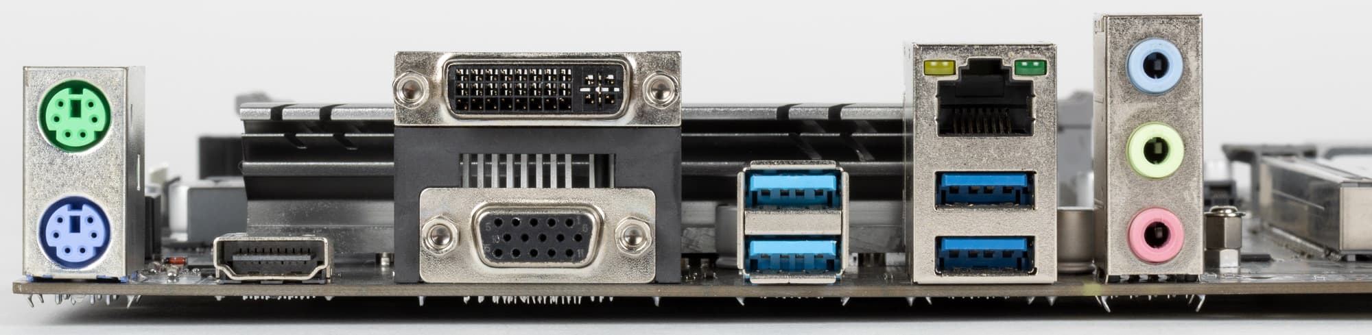 | Разъемы на задней панели | 4 × USB 3.2 Gen2 (Type-A) 3 аудиоразъема типа миниджек 1 × RJ-45 1 × d-Sub (VGA) (выход) 1 × HDMI (выход) 1 × DVI-D (выход) 2 разъемa PS/2 |