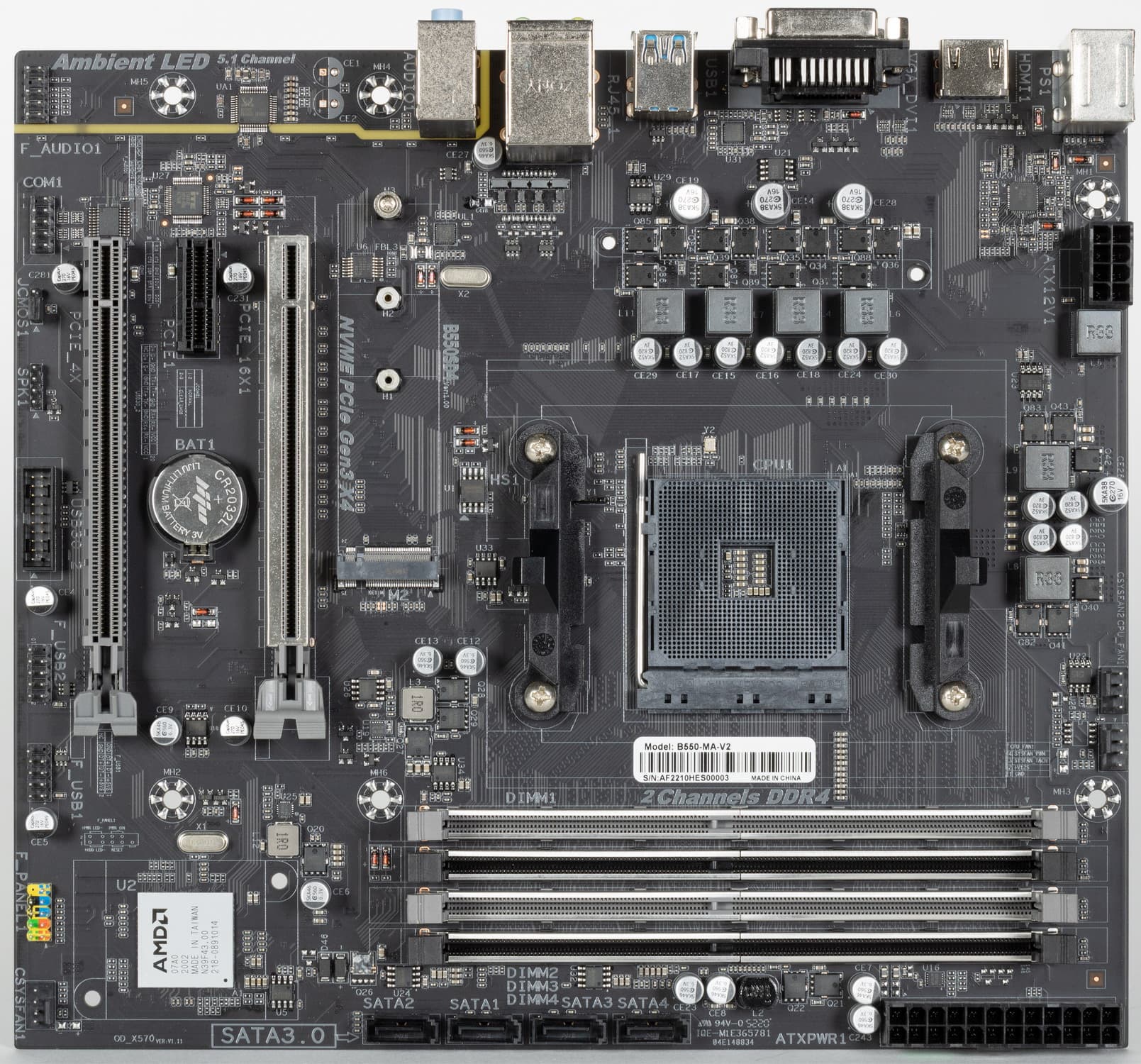 | Разъемы для накопителей | 4 × SATA 6 Гбит/с (B550) 1 × M.2 (B550, PCIe 3.0 x4/SATA для устройств формата 2242/2260/2280) |