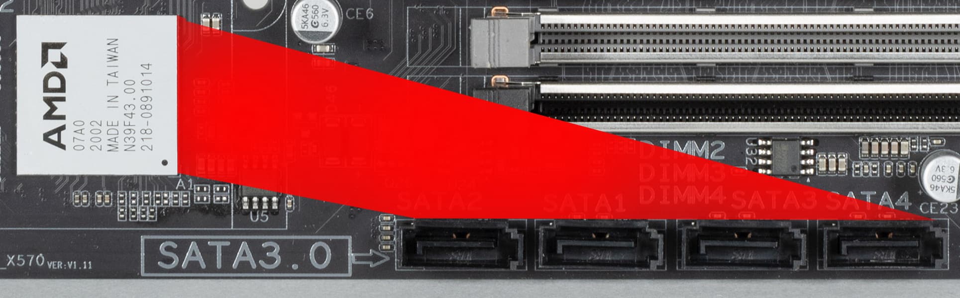 Процессоры Ryzen 3000-5000 суммарно имеют 24 линии ввода-вывода (включая PCI-e 4.0). 4 линии (в данном случае превращаясь в PCI-e 3.0) идут на связь с чипсетом B550. Еще 16 линий — это PCI-e слоты для видеокарт. Осталось 4 линии: они могут конфигурироваться производителями материнских плат на выбор (либо-либо):