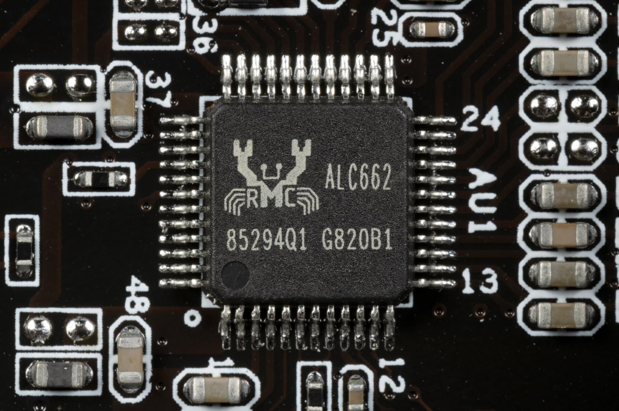 Аудиоподсистема весьма проста: нет ни операционных усилителей, ни ЦАП. В аудиоцепях платы применяются «аудиофильские» конденсаторы Nichicon Fine Gold.