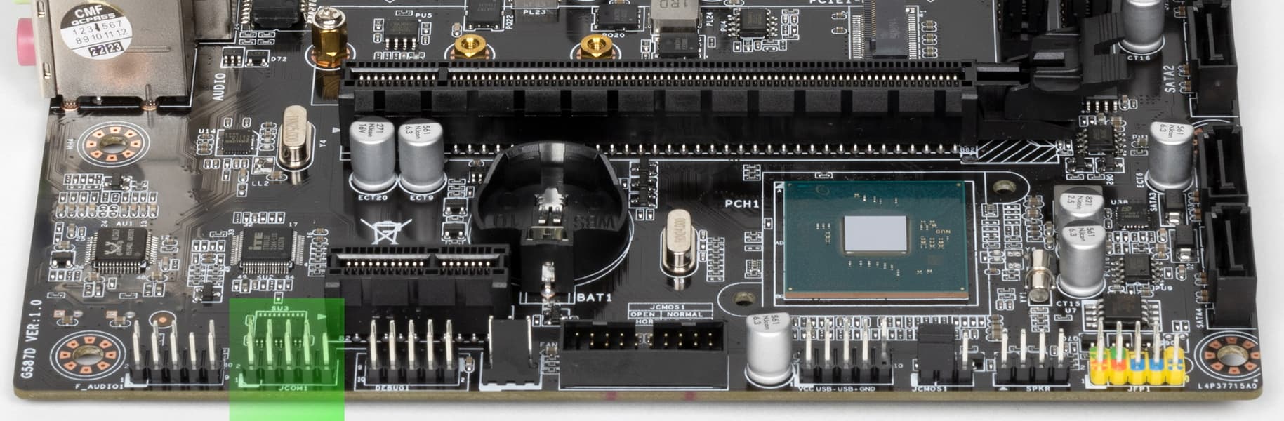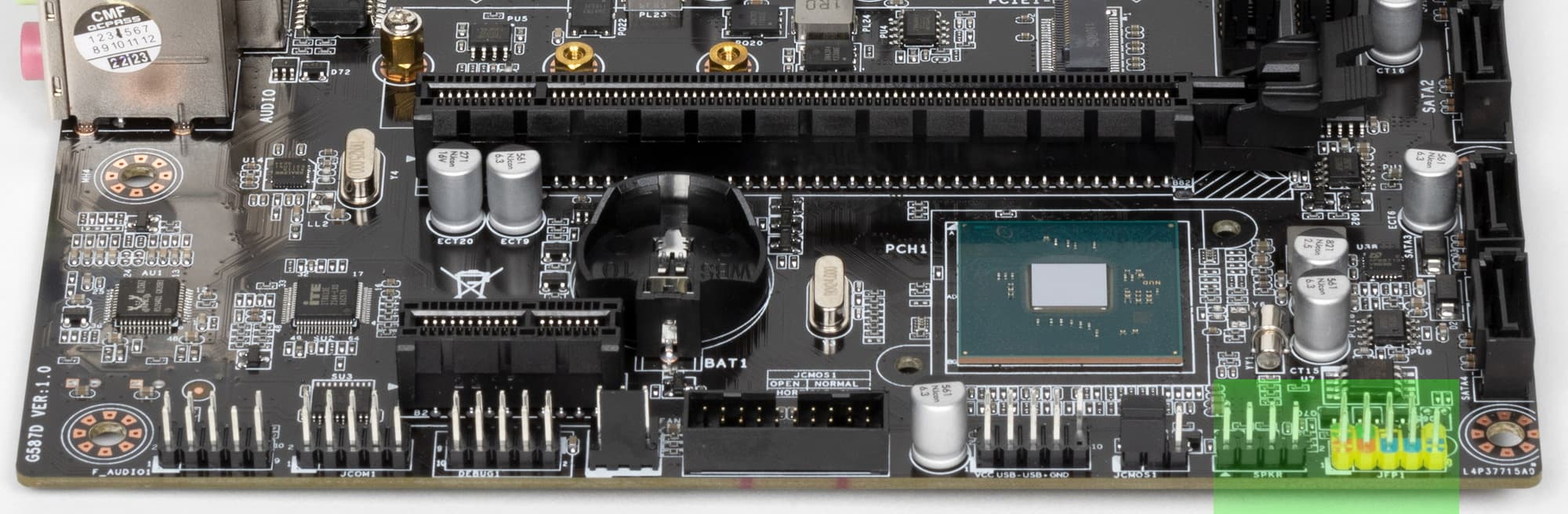 - 4 порта USB 3.2 Gen1: все реализованы через H510 и 2 представлены на задней панели портами Type-A (голубого цвета), еще 2 представлены внутренним разъемом на материнской плате на 2 порта;