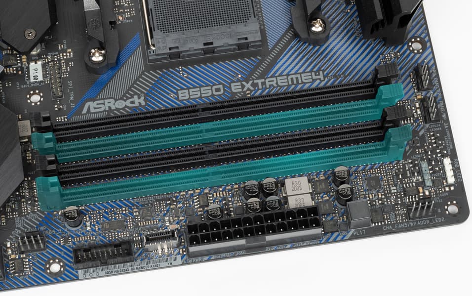 Для установки модулей памяти на плате имеется четыре DIMM-слота (для работы памяти в Dual Channel в случае использования всего 2 модулей их следует устанавливать в А2 и B2). Плата поддерживает небуферизованную память DDR4 (non-EСС), а максимальный объем памяти составляет 128 ГБ (при использовании UDIMM последнего поколения по 32 ГБ). Разумеется, поддерживаются профили XMP.