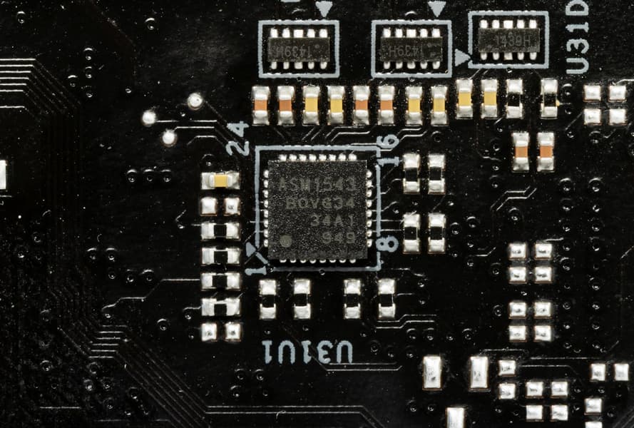 А для нужд быстрой зарядки порт Type-C на задней панели и аналогичный внутренний порт для вывода на переднюю панель имеют редрайверы от ASMedia ASM1543.