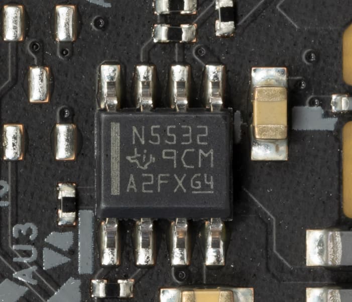 также аудиотракт содержит операционный усилитель NE5532P (Texas Instruments).