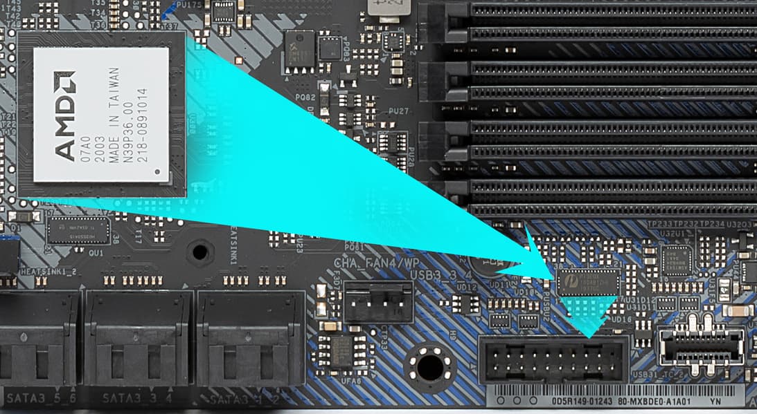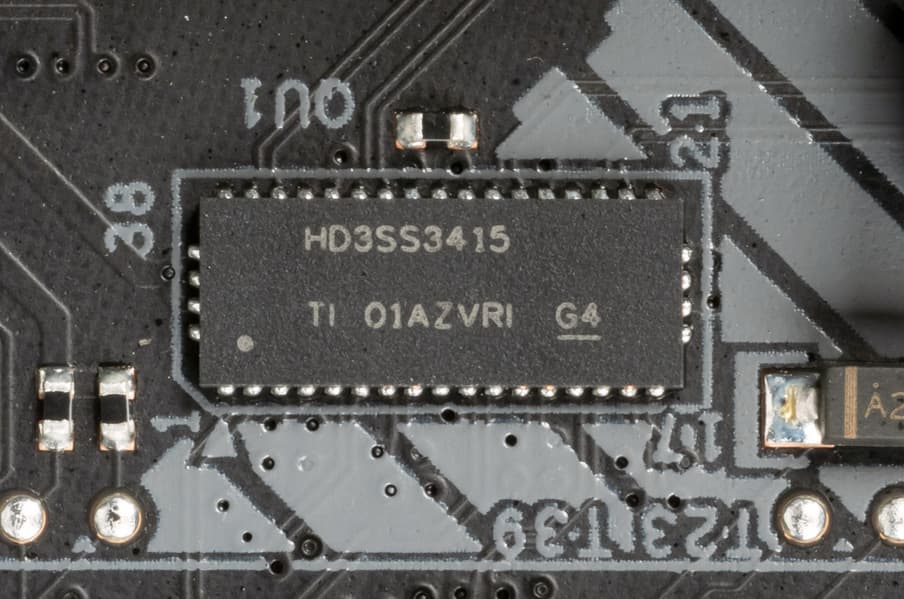 Напомню, что порты SATA 5,6 делят ресурсы с M.2_2, поэтому есть мультиплексор HD3SS3415 от Texas Instruments.