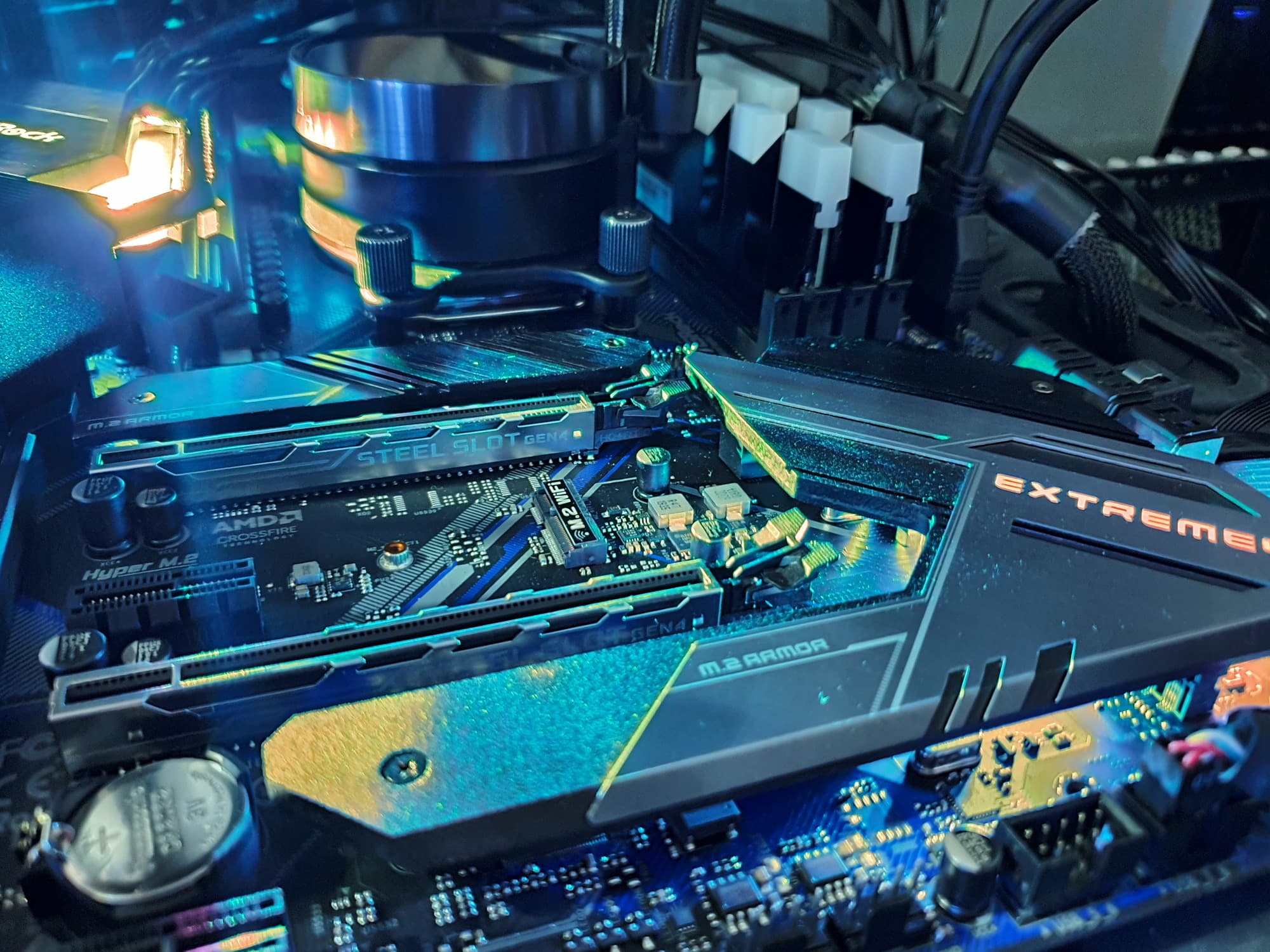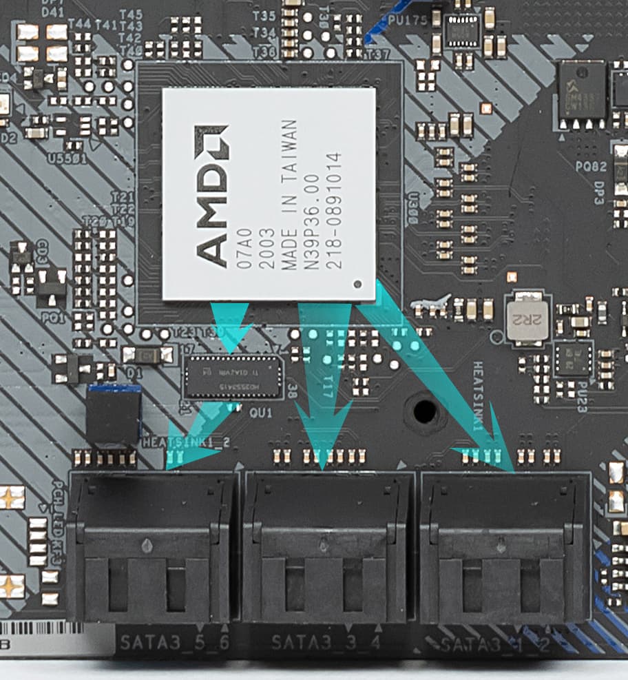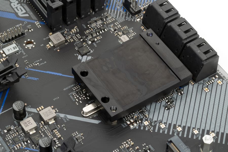 Оба M.2 слота на самой матплате имеют два раздельных радиатора, которые не связаны с какими-то иными устройствами охлаждения на данной плате.