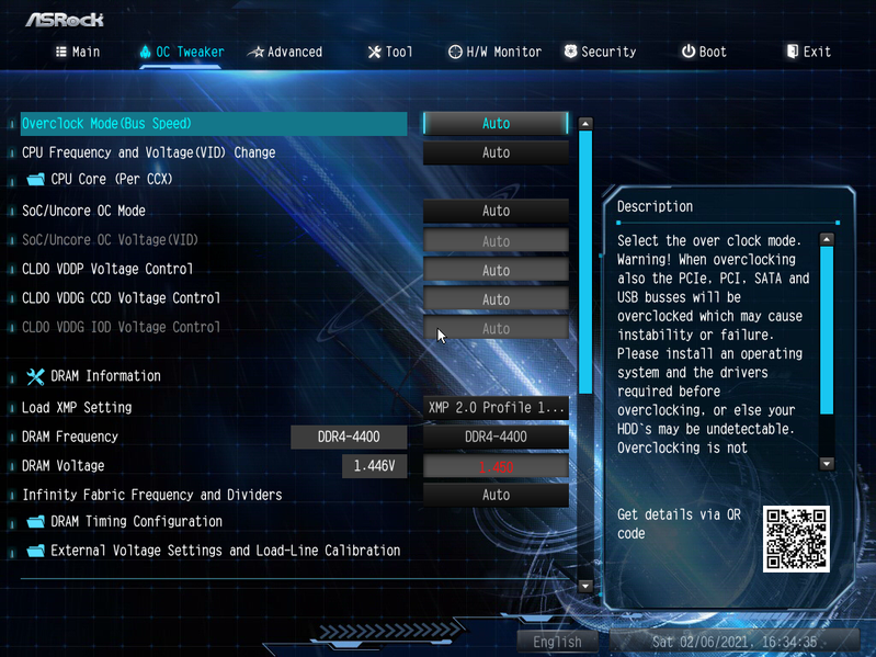 Также хорошо известно, что внутренняя шина процессоров Ryzen — Infinity Fabric очень чувствительна к разгону, и ранее ее частота не должна была превышать 1800 МГц, а теперь на Ryzen 5000 серии отдельные экземпляры процессоров могут работать и 2000 МГц по этой шине. Хотя практика показала, что как правило, все же 5000 «райзены» в массе своей не переваривают повышение IF выше 1900 МГц. А IF связана с частотой работы памяти множителями. По умолчанию он равен 1. То есть расчет на частоту работы памяти не выше 3600 МГц. Но уже много памяти на рынке с XMP профилями выше 4000 МГц, и тут все зависит от конкретной модели матплаты: на каких-то надо вручную выставлять частоту IF или памяти, а также множителей, а какие-то модели автоматически выставят частоту IF не выше 1800 МГц вне зависимости от частоты работы памяти с XMP профилем (просто подберут нужный множитель). Данная плата от ASRock способна сама реализовать контроль за частотой IF, держа ее не выше 1800 МГц (разумеется, если она выставлена в режиме Auto) и выставляет множитель для частоты памяти автоматически.