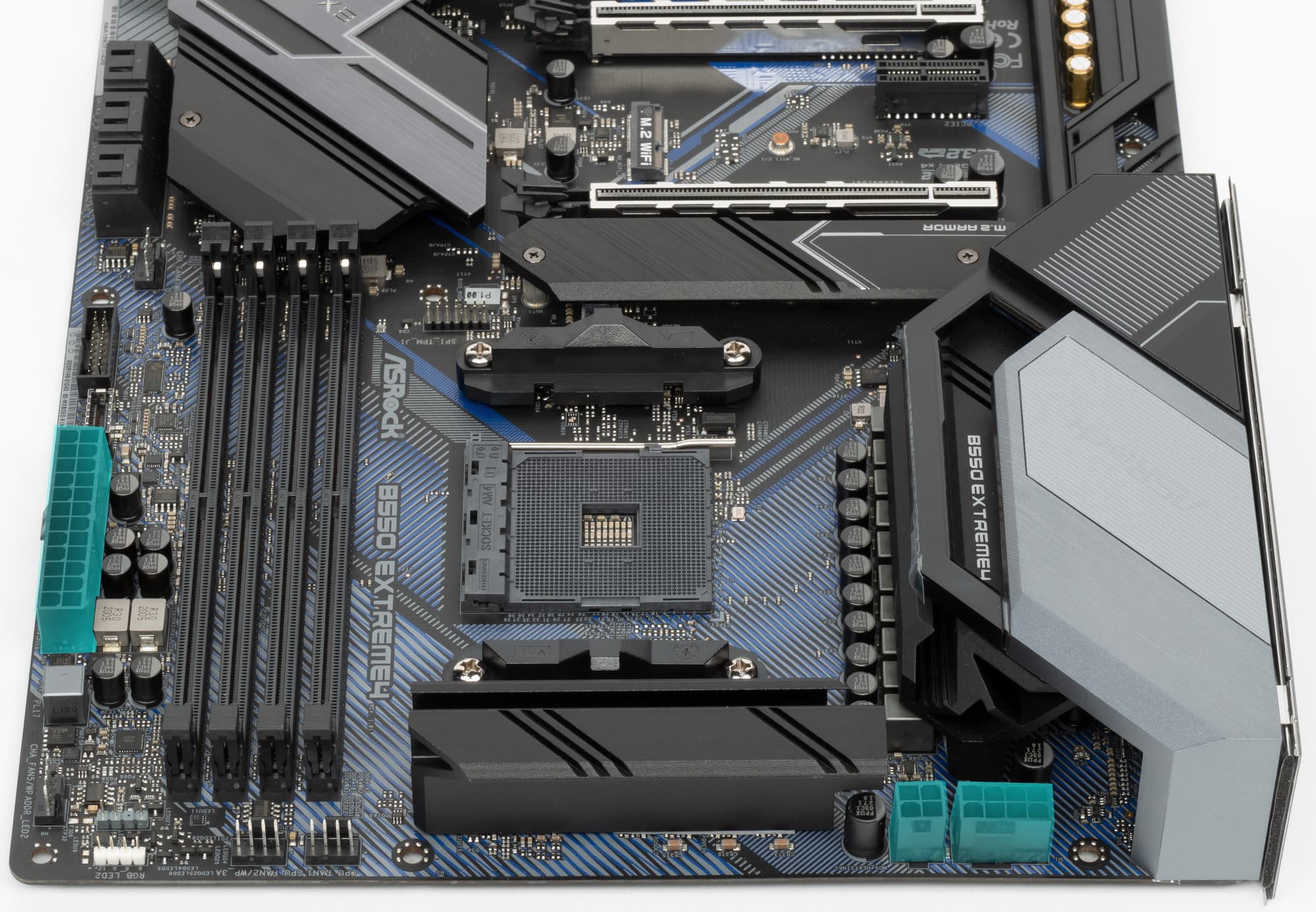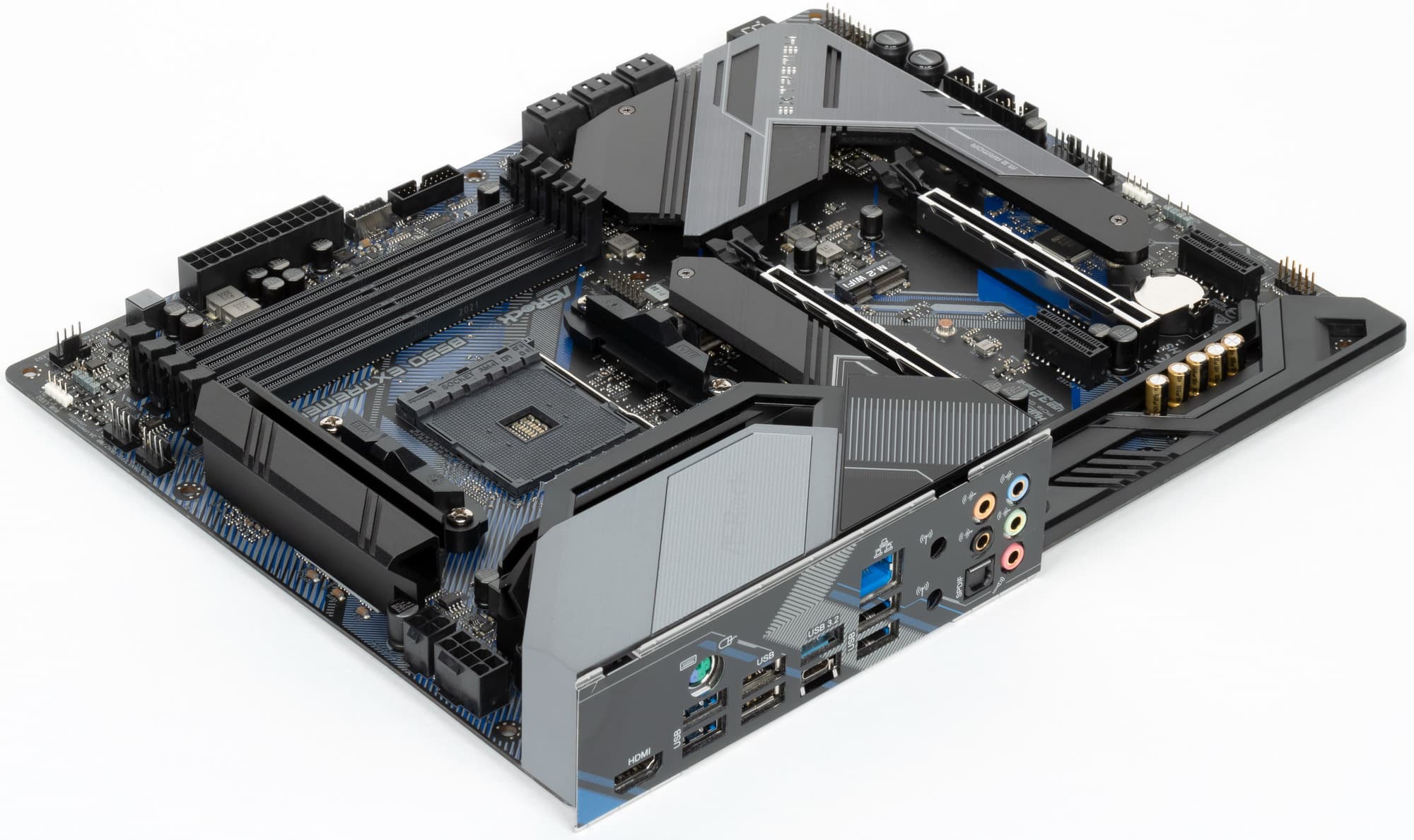 Надо особо отметить, что у компании ASRock есть флагманская серия Taichi, есть примерно на том же уровне игровая серия Phantom Gaming, остальные серии — разноплановые, четких позиционирований там нет. Понятно, что выпускать матплаты не на топовом чипсете в рамках серий Taichi — не комильфо, а все равно хочется показать, что и на B550 можно выпустить материнку с отличной системой питания, так что тут маркетологи взяли уже избитое до невозможности слово extreme. Вот наша плата как раз относится к этой серии — ASRock B550 Extreme4.