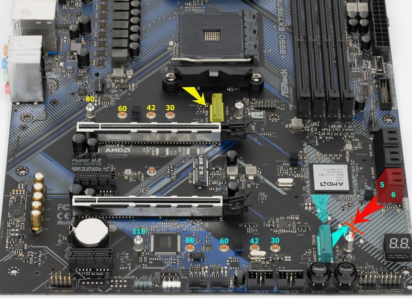 - Переключатель: или порты SATA_5/6 (2 линии), или слот M.2_2 (4 линии): максимум 4 линии;