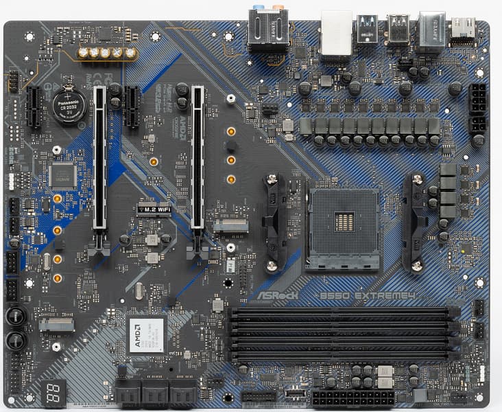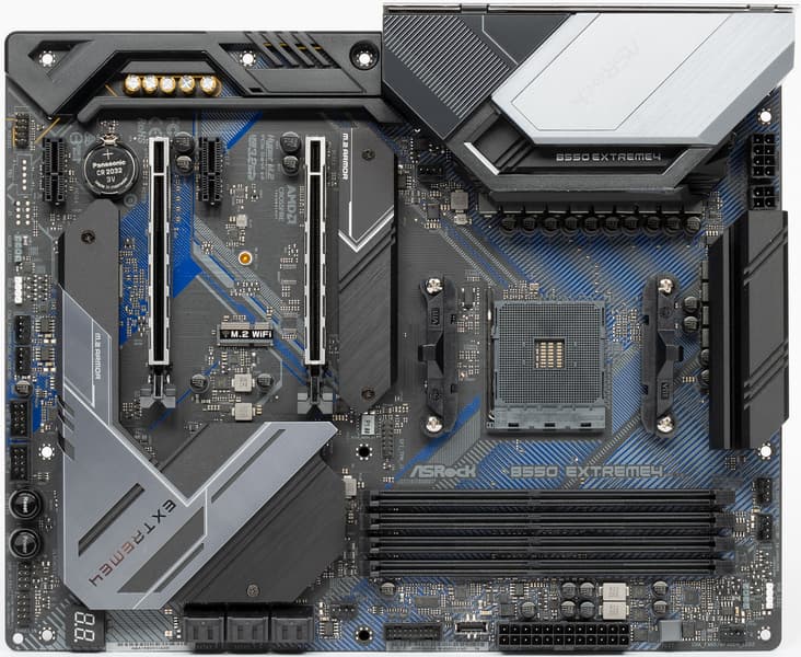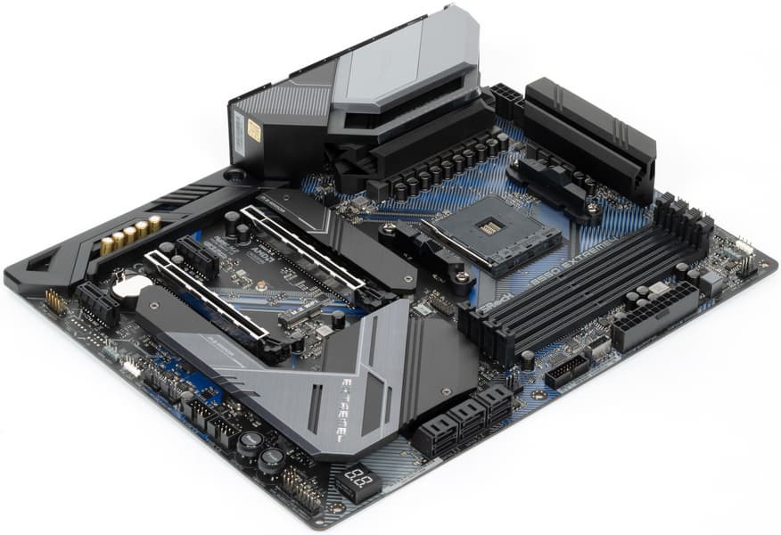 ASRock B550 Extreme4 — материнская плата на среднебюджетном чипсете, обладающая прекрасной системой питания, обеспечивающей стабильную работу даже таких флагманских процессоров, как Ryzen 9 5950X, при этом почти не ограничивая авторазгон, заложенный в рамках AMD PBO.