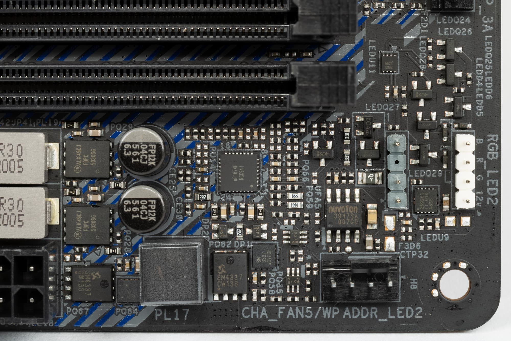 Они расположены на оборотной стороне платы (ISL6617A от того же Renesas, бывшей Intersil).