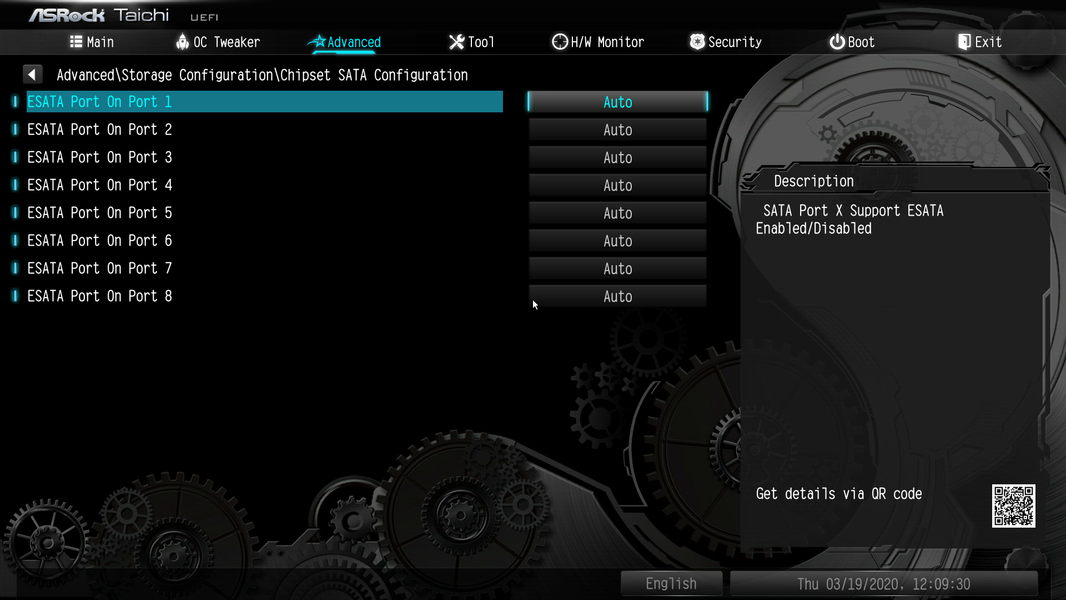 Управление периферией сосредоточено в разделе Advanced. Имеется возможность управления по сути каждым портом.