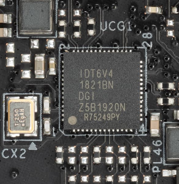 Зато есть внешний генератор частот для поддержки разгона шины PCI-e 4.0 — IDT6V4.