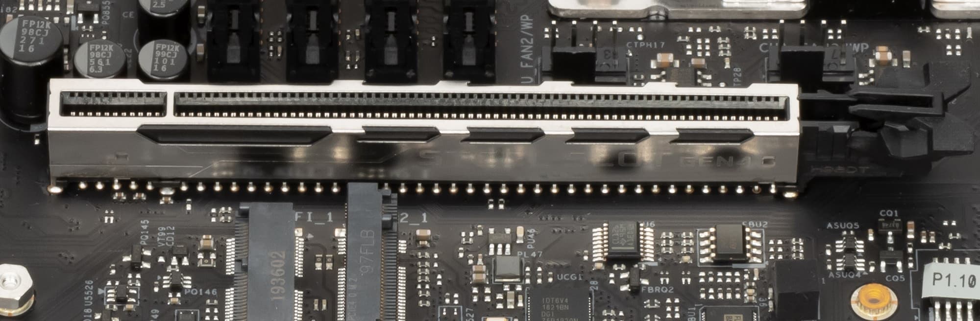 - 24 PCI-e 4.0 линий (8 от процессора + 16 от чипсета), которые могут образовывать разные варианты комбинаций портов и слотов (в зависимости от производителя материнских плат).