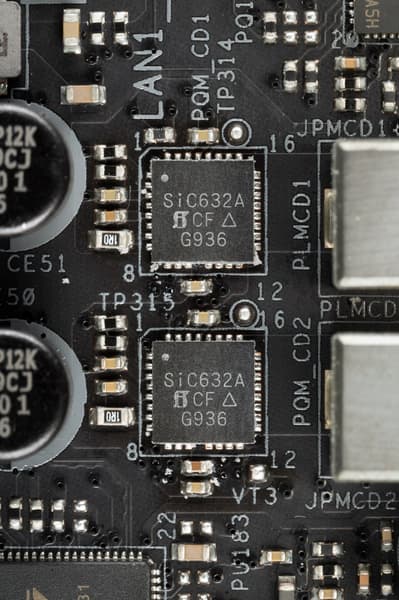 Каждая фаза имеет суперферритовую катушку и мосфеты SiC632A (до 50А) от Vishay