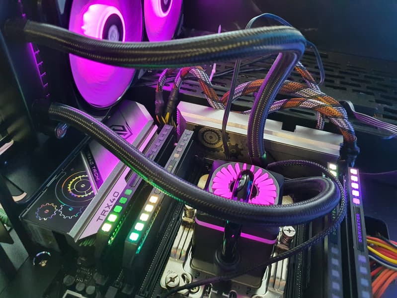Стоит отметить, что вентилятор на радиаторе от TRX40 не доставляет дискомфорта, хоть и достигал 3400 оборотов в минуту. Он почти всегда работал на постоянных оборотах и за общим шумом не выделялся. А вентиляторы на VRM-радиаторе вообще редко включались, а если уж и работали, то на очень малых оборотах.