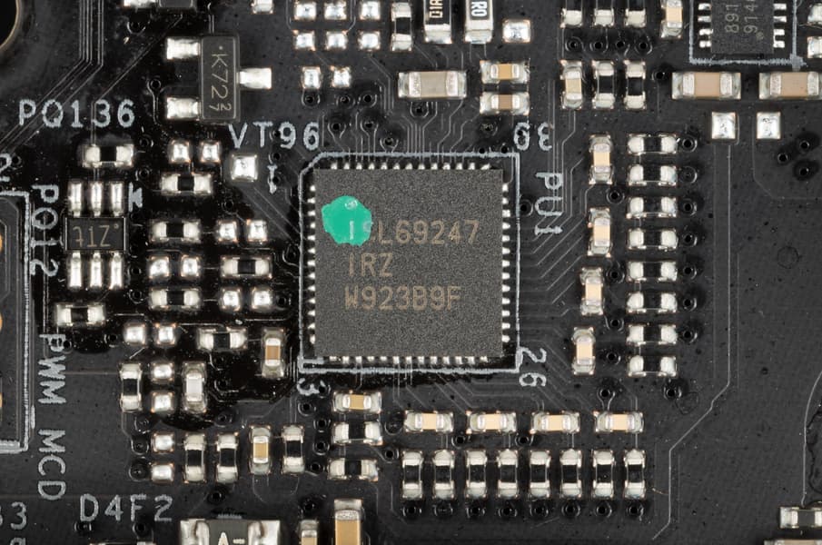 А ISL69247 (Intersil/Renesas) умеет управлять максимум 8 фазами только. Смотрим на оборот материнки...