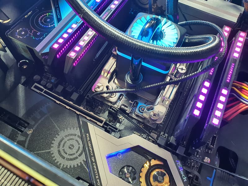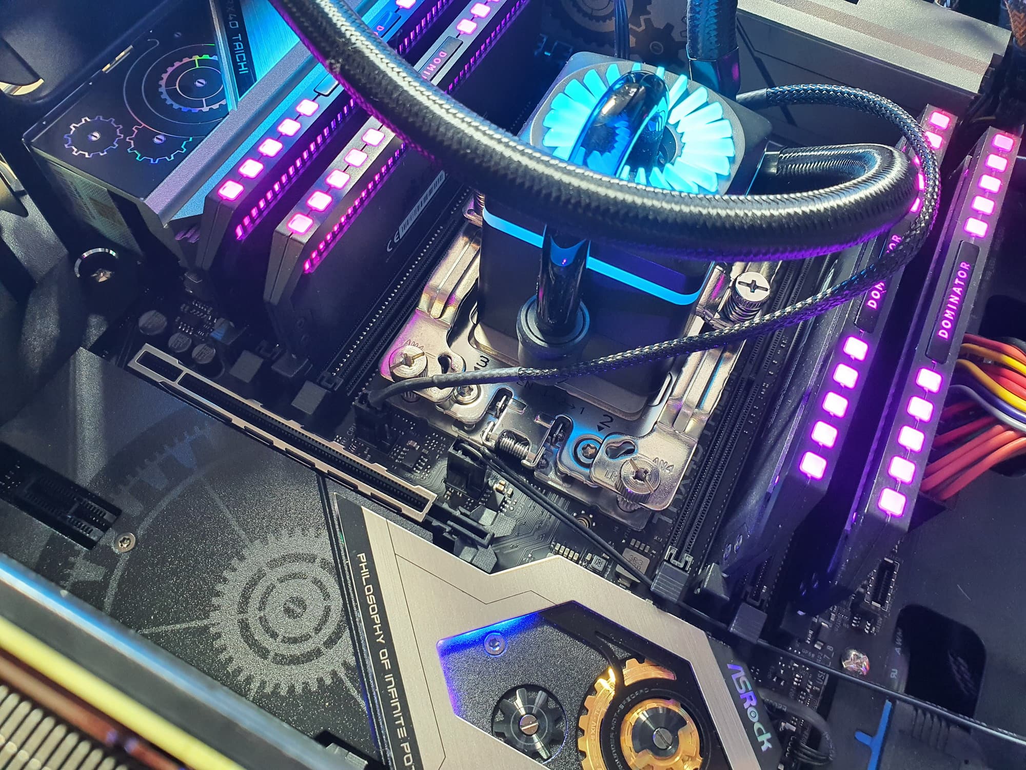 Расположение слотов позволяет легко смонтировать СО любого уровня и класса, к тому же производители по умолчанию подразумевают использование ЖСО для таких процессоров, и любая помпа или водоблок от кастомной ЖСО легко установится на данной плате.