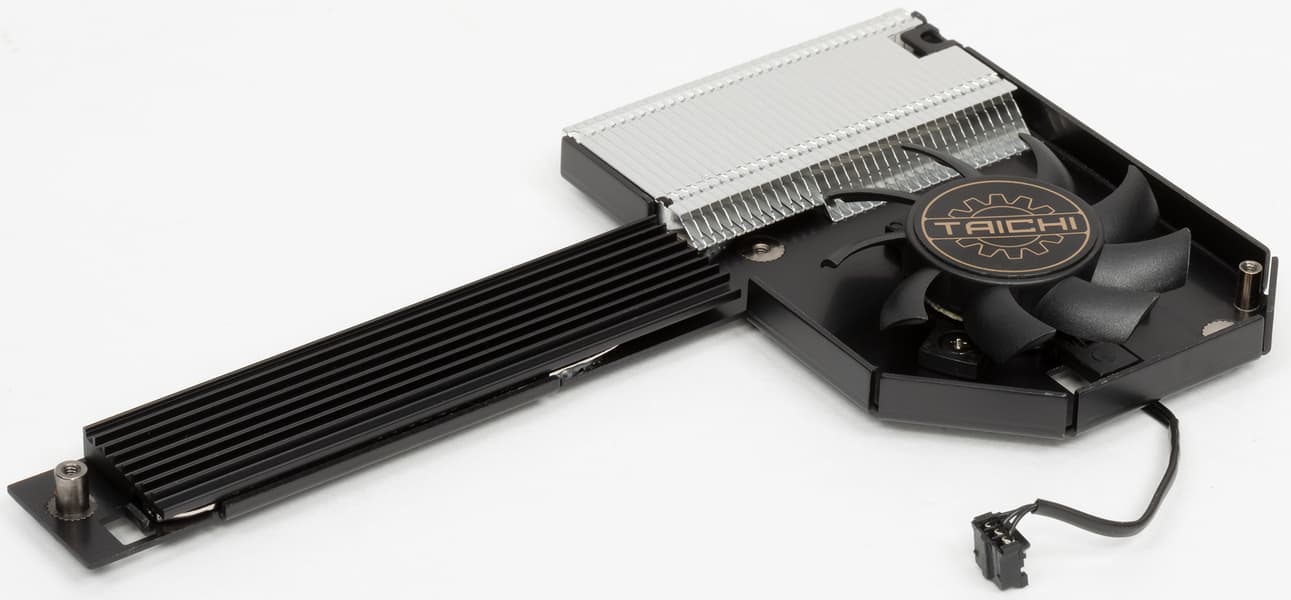 Каждый слот M.2 имеет свой радиатор с термоинтерфейсами. Правда радиатор у M.2_1 объединен с крышкой радиатора системного чипсета.