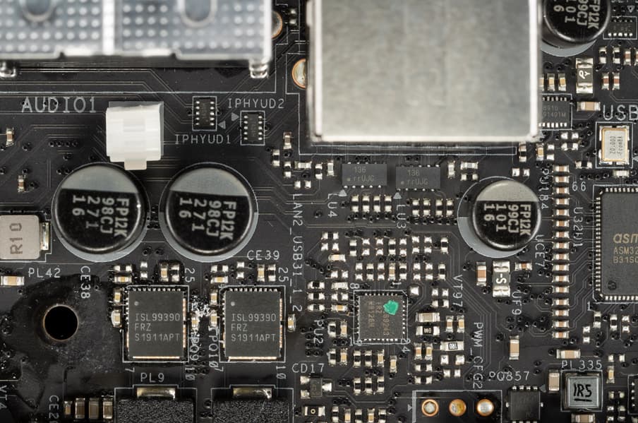 В аудиоцепях платы применяются «аудиофильские» конденсаторы Nichicon Fine Gold.
