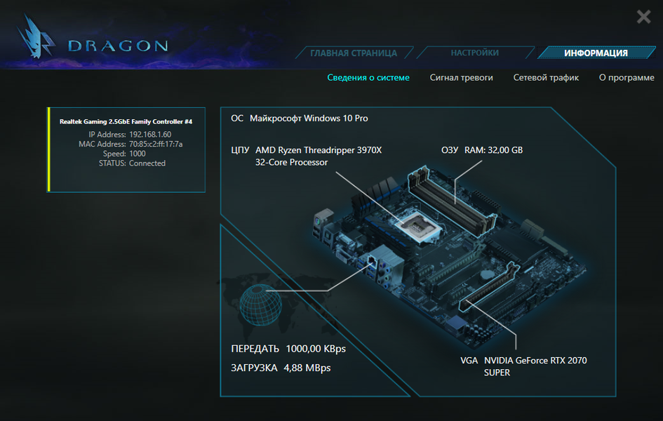 Как и следовало ожидать, наличие второго более скоростного сетевого контроллера (Realtek Dragon RTL8125) дало все основания укомплектовать данную материнскую плату специальной программой.