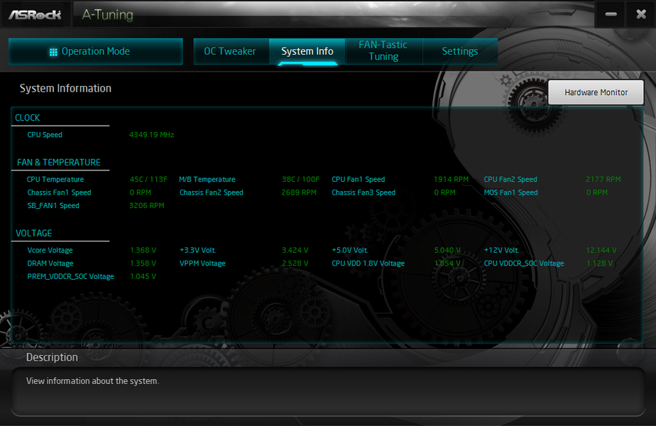 Раздел мониторинга дает возможность не только лицезреть температуры и обороты вентиляторов, но и управлять последними через панель Fan и Fan-Tastic Tuning.