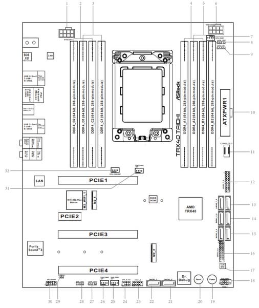 | USB-порты | 1 × USB 3.2 Gen2x2: 1 порт Type-C на задней панели (ASMedia) 3 × USB 3.2 Gen2: 2 порта Type-A (голубые) и 1 внутренний разъем под порт Type-C (CPU) 4 × USB 3.2 Gen1: 4 порта Type-A (синие) (TRX40) 4 × USB 3.2 Gen1: 2 внутренних разъема на 4 порта (TRX40) 2 × USB 2.0: 1 внутренний разъем на 2 порта (TRX40) |
