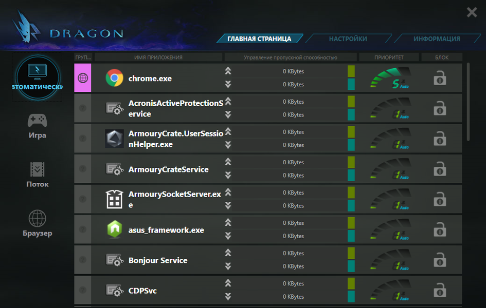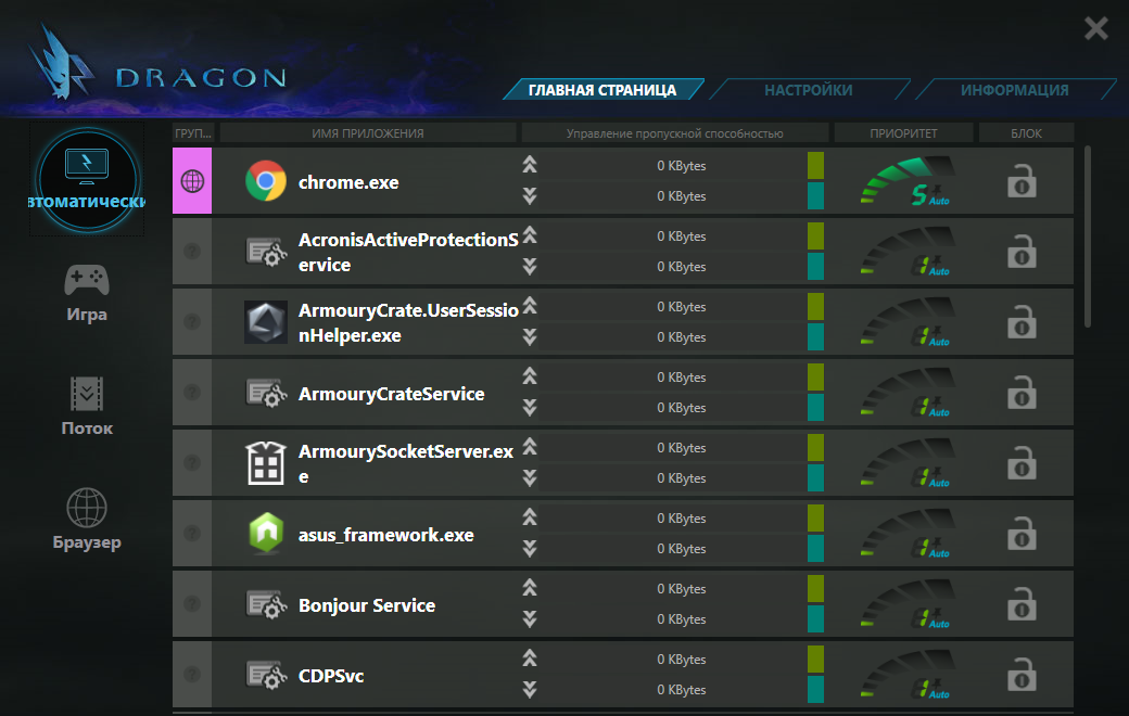 Программа позволяет регулировать приоритет сетевых потоков разных приложений в автоматическом режиме, а также дает возможность управлять ими вручную.