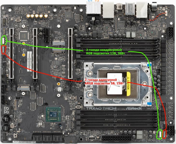 Как дополнительный плюс стоить отметить красивую подсветку самой платы и широкие возможности для подключения дополнительных RGB-устройств.