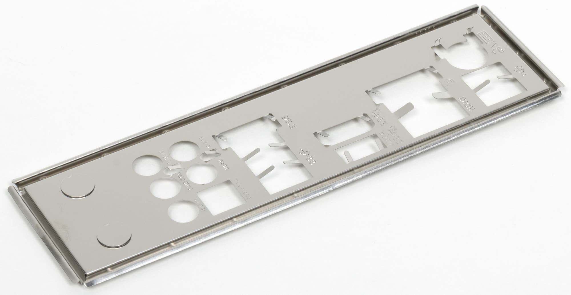 Заглушка, традиционно надеваемая на заднюю панель, поставляется в комплекте отдельно. Вообще замечено, что уже смонтированная на плате заглушка в фабричных условиях или поставляемая отдельно в комплекте, – явный признак позиционирования матплаты: высокий/средний уровень, ну или ниже среднего уровня.-)