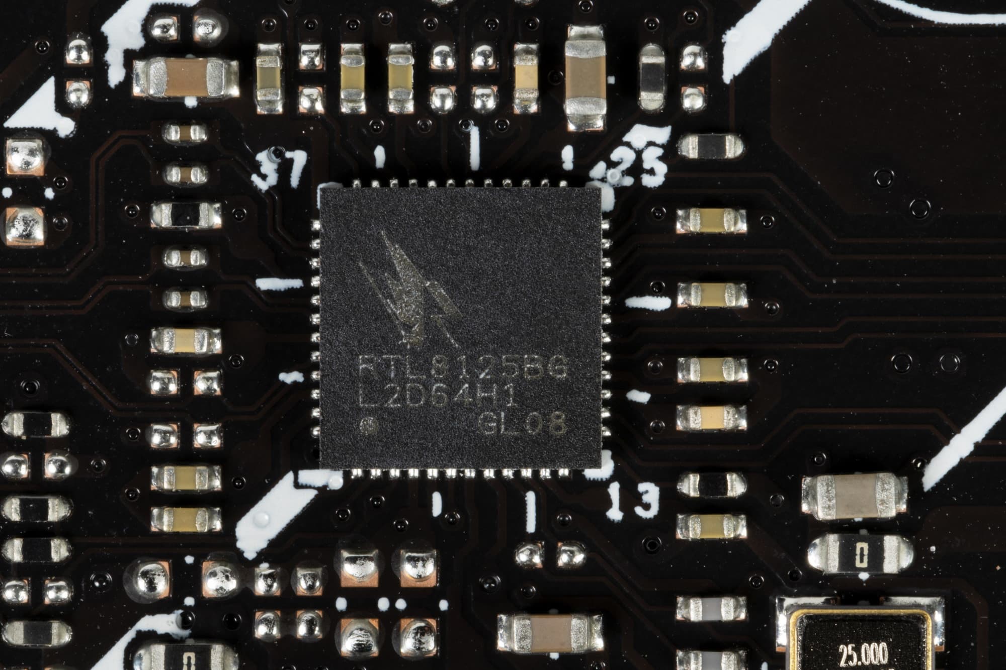 Материнская плата оснащена средствами связи посредственно. Имеется только один Ethernet-контроллер, но все же скоростной: Realtek RTL8125BG, способный работать по стандарту 2,5 Гбит/с.