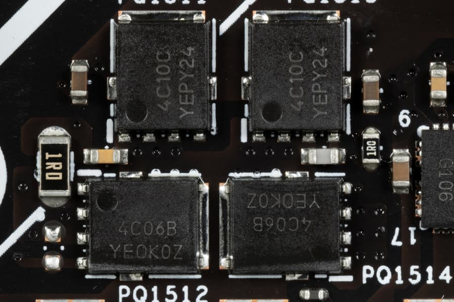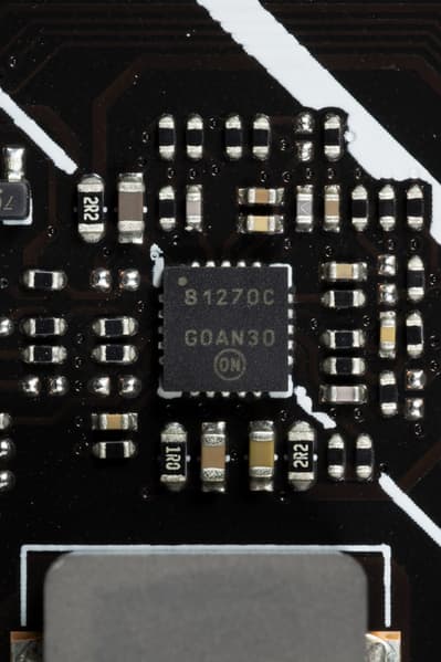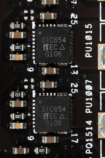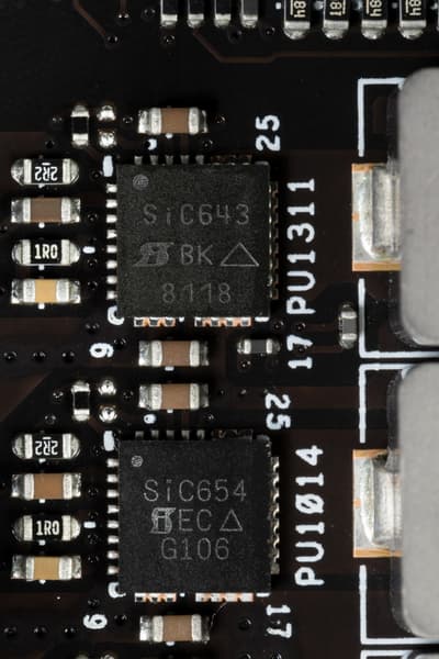 Каждый канал фазы имеет суперферритовый дроссель и SiC654 MOSFET от Vishay на 55 А для VCore.