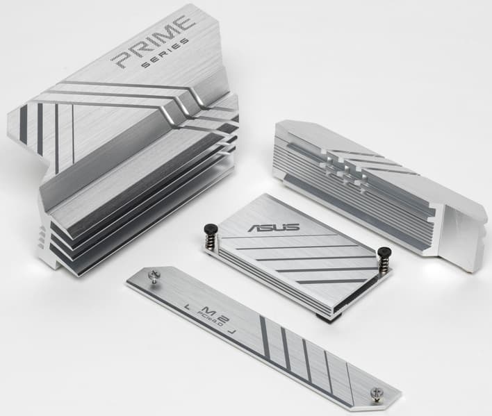 Серия Prime чисто внешне давно выделена бело-серебристой расцветкой устройств охлаждения и довольно пестрым черно-белым рисунком/узором на самой печатной плате.