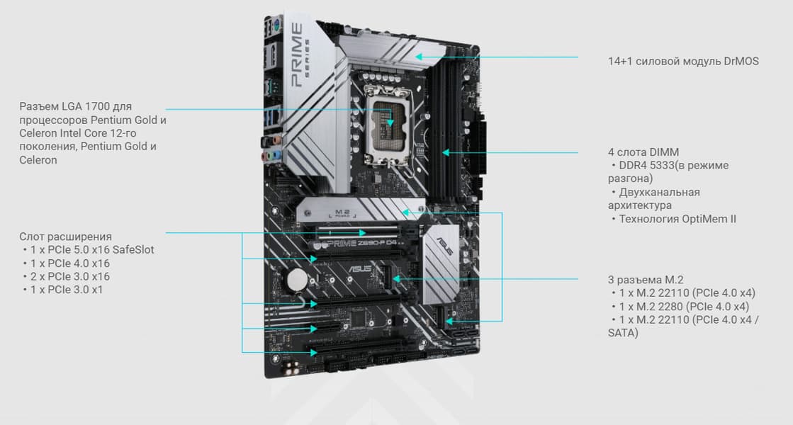 Еще раз надо напомнить, что Asus Prime Z690-P поддерживает процессоры Intel Core 12-го поколения, выполненные под разъем (сокет) LGA1700.