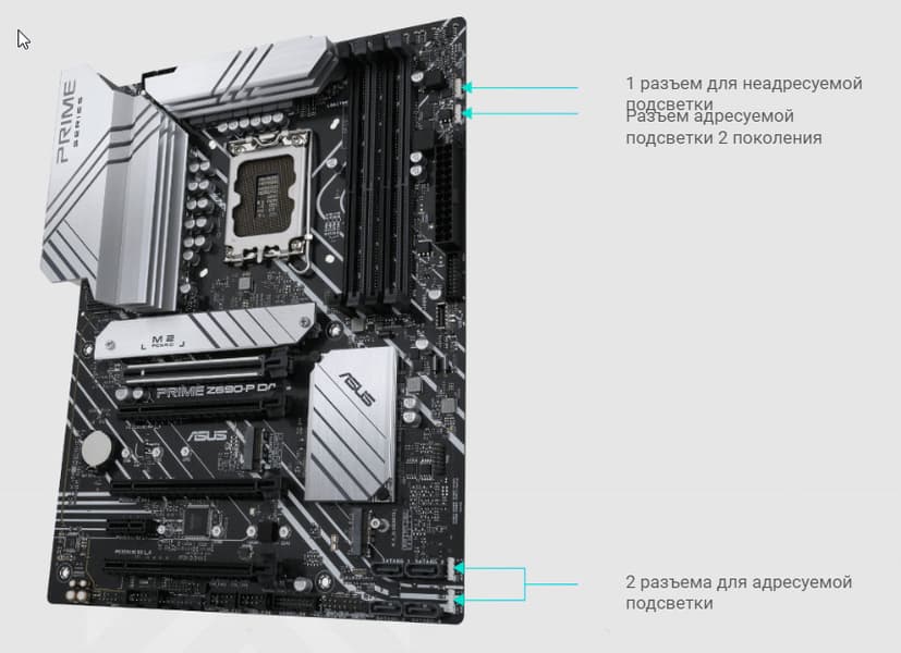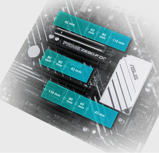 | Разъемы для накопителей | 4 × SATA 6 Гбит/с (Z690) 1 × M.2 (CPU, PCIe 4.0 x4 для устройств формата 2242/2260/2280/22110) 1 × M.2 (Z690, PCIe 4.0 x4 для устройств формата 2242/2260/2280) 1 × M.2 (Z690, PCIe 4.0 x4/SATA для устройств формата 2242/2260/2280/22110) |