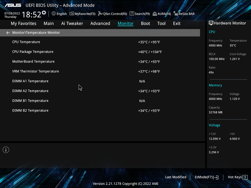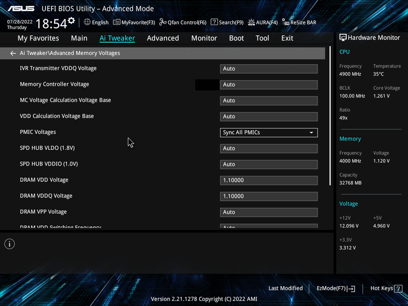 Для установки модулей памяти на плате Asus имеется четыре DIMM-слота (для работы памяти в Dual Channel в случае использования всего 2 модулей их следует устанавливать в А2 и B2. Плата поддерживает небуферизованную память DDR5 (non-EСС), а максимальный объем памяти составляет 128 ГБ. Разумеется, поддерживаются профили XMP.