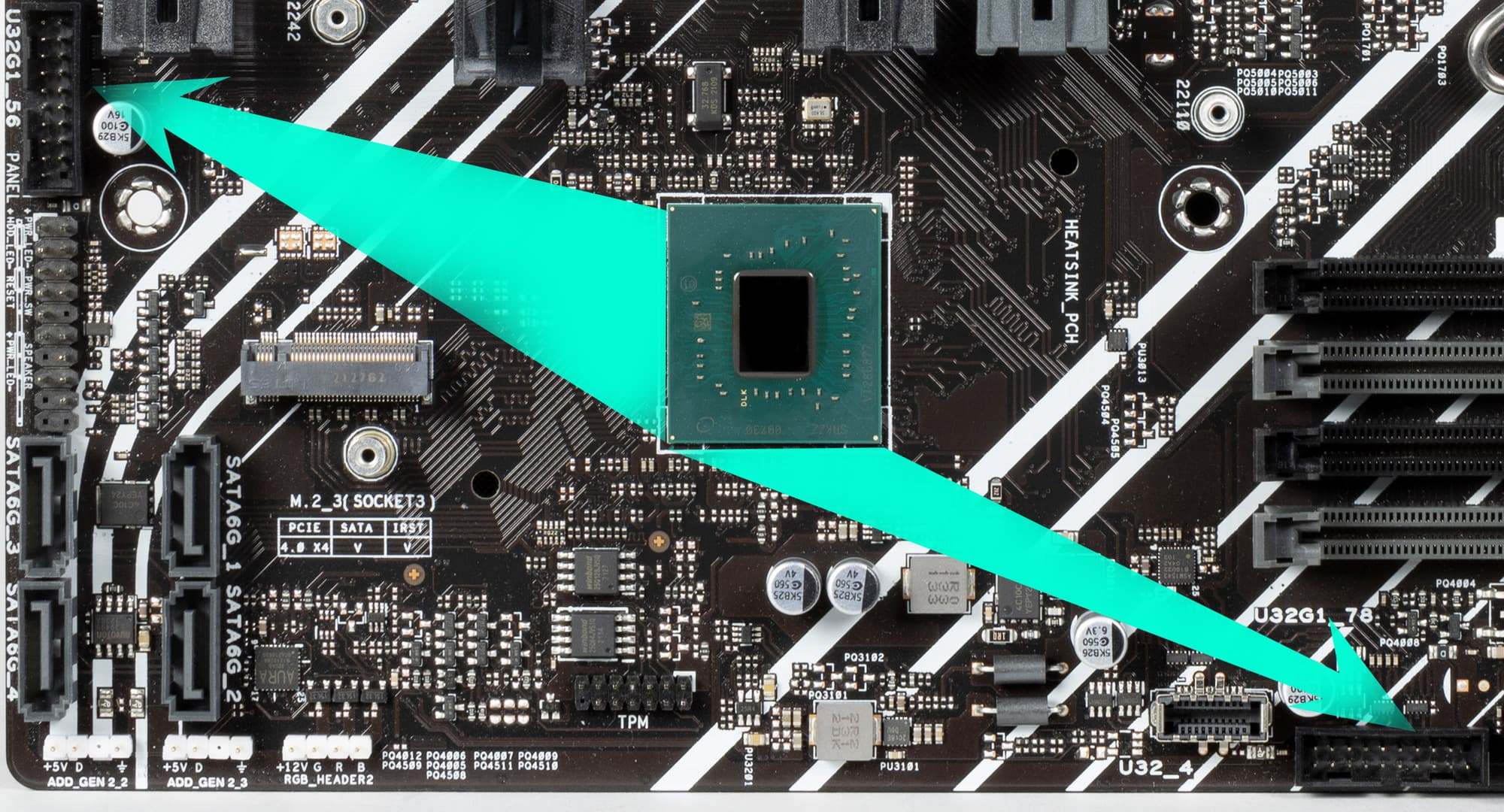 Система питания процессора способна обеспечить работу любых совместимых процессоров с запасом на очень хороший разгон. Плата имеет неплохую систему охлаждения почти каждого потенциально греющегося элемента, однако накопители в слотах M.2 (кроме первого) лишены охлаждения, а ведь могли бы поставить радиаторы — копейки же стоят. В числе плюсов платы можно упомянуть широкие возможности для подключения дополнительных RGB-устройств. К минусам надо отнести всего 1 сетевой контроллер, пусть и 2,5 Гбит/с (но имеется слот для отдельно покупаемого модуля M.2/Wi-Fi/BT).