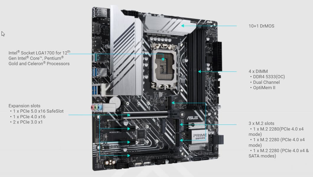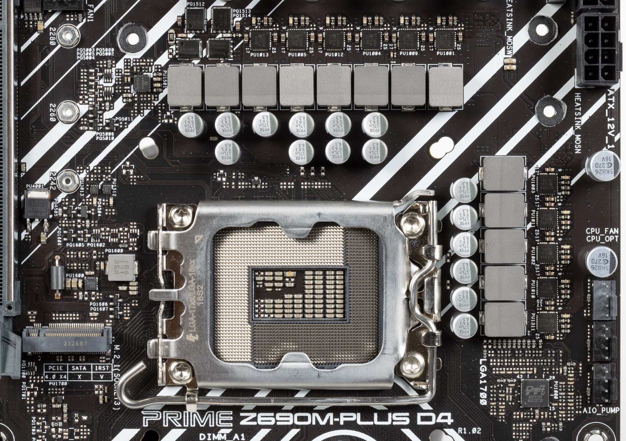 Еще раз надо напомнить, что Asus Prime Z690M-Plus D4 поддерживает процессоры Intel Core 12-го поколения, выполненные под разъем (сокет) LGA1700.