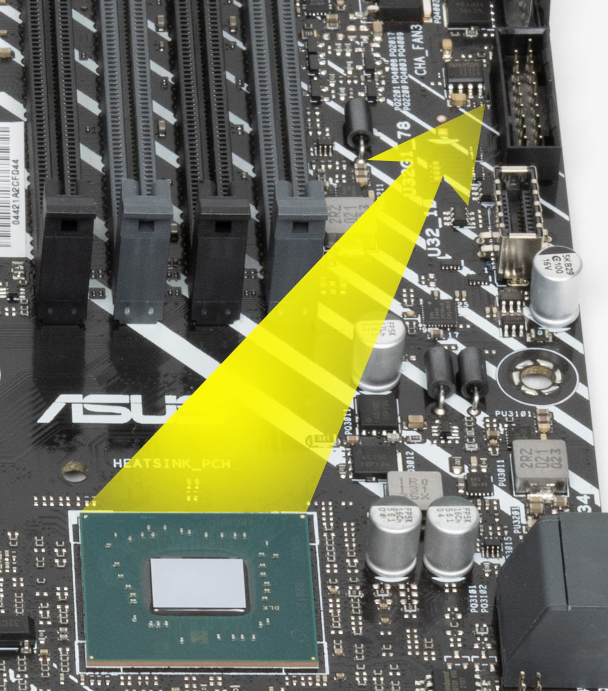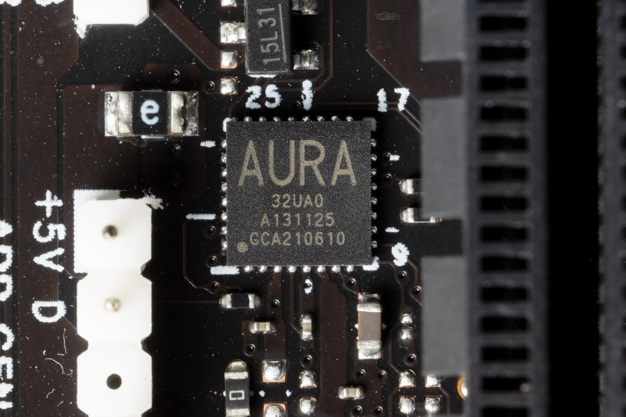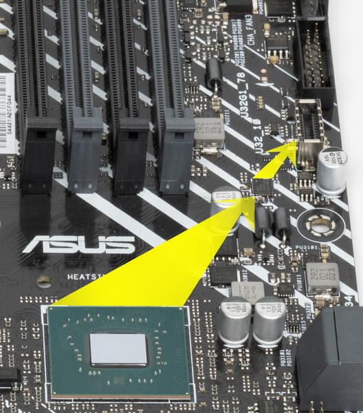 Уже давно серия Prime чисто внешне выделяется бело-серебристой расцветкой устройств охлаждения и довольно пестрым черно-белым рисунком/узором на самой печатной плате.