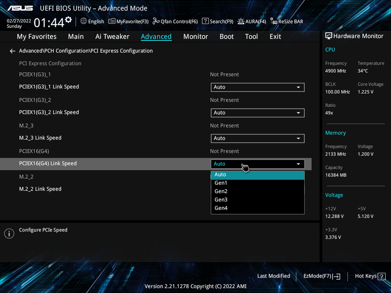Теперь посмотрим выше на то, как работают процессоры в данной конфигурации. У CPU 12-го поколения всего 20 линий PCIe, 4 из них версии PCIe 4.0 отведены на порт М.2 (M2_1). Оставшиеся 16 линий PCIe 5.0 идут на единственный PCIe x16_1, так что вариантов переключений просто физически нет.