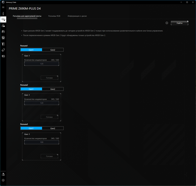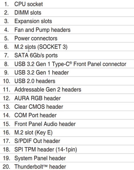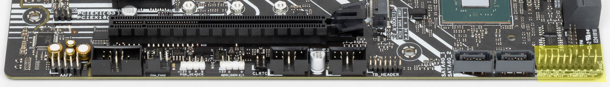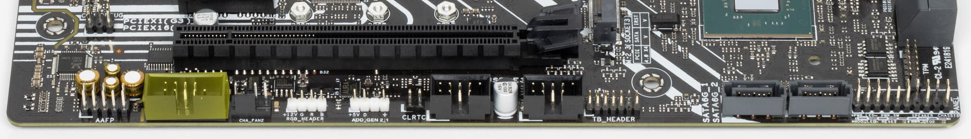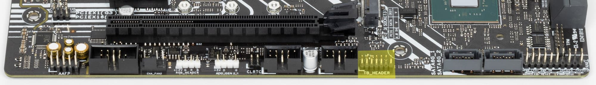 | Прочие внутренние элементы | 24-контактный разъем питания ATX 1 8-контактный разъем питания EPS12V 1 4-контактный разъем питания EPS12V 1 разъем для подключения порта USB 3.2 Gen1 Type-C 1 разъем для подключения 2 портов USB 3.2 Gen1 2 разъема для подключения 4 портов USB 2.0 6 разъемов для подключения 4-контактных вентиляторов и помп ЖСО 1 разъем для подключения неадресуемой RGB-ленты 3 разъема для подключения адресуемой ARGB-ленты 1 разъем аудио для передней панели корпуса 1 разъем Thunderbolt 1 разъем COM-port 1 разъем TPM для устройств безопасности 1 разъем S/PDIF (выход) 2 разъема для подключения управления с передней панели корпуса |