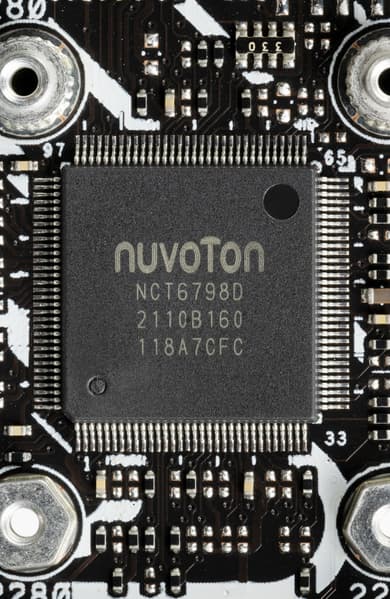 Система питания процессора способна обеспечить работу любых совместимых процессоров с запасом на очень хороший разгон. Плата имеет неплохую систему охлаждения почти каждого потенциально греющегося элемента, а вот лишенные охлаждения накопители в слотах M.2 — это минус (покупателю желательно приобретать накопители со своими радиаторами или отдельно сами радиаторы). В числе иных плюсов платы можно упомянуть широкие возможности для подключения ARGB/RGB-устройств подсветки.