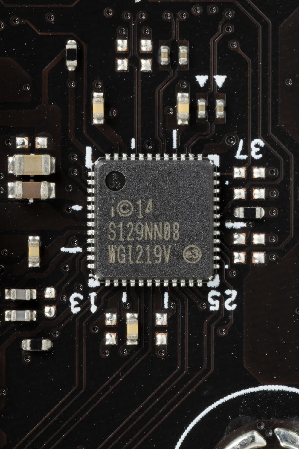 В аудиоцепях платы применяются «аудиофильские» конденсаторы Nichicon Fine Gold.
