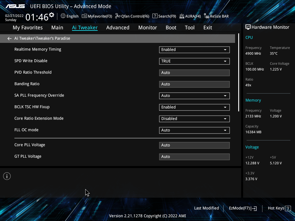 Пришлось повозиться, так как даже при выставлении множителей и частот вручную надо тщательно искать включенные технологии разгонов и при выставленных 5100 МГц мы получали в реальности 5250, что уже вызывало резкий перегрев процессора (СВО не справлялась).