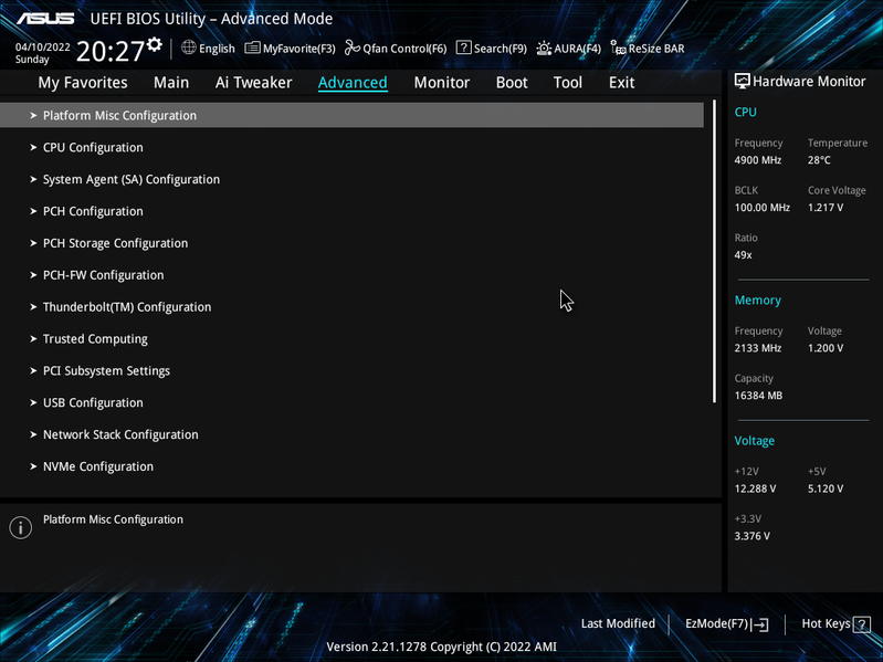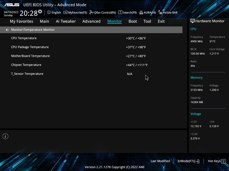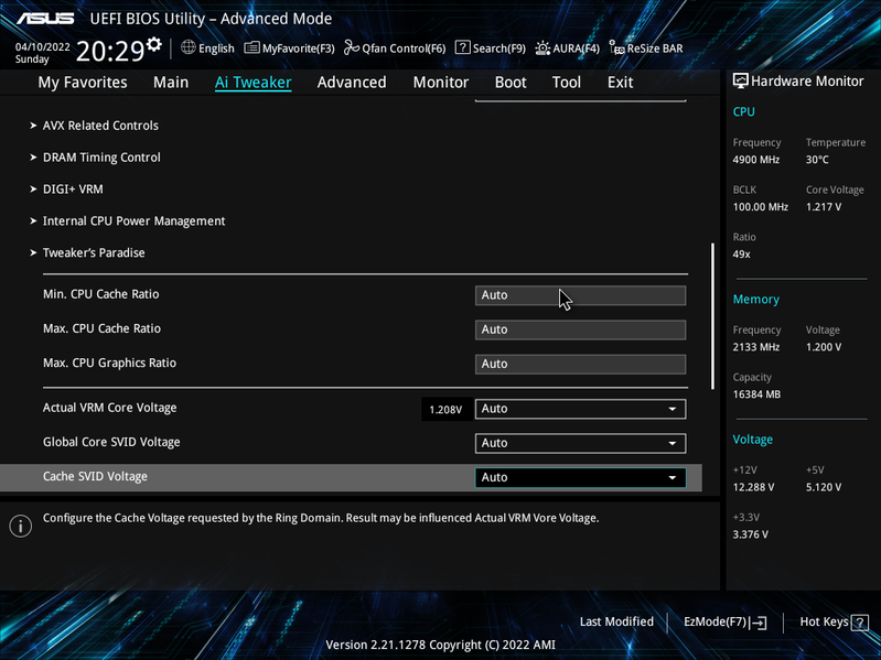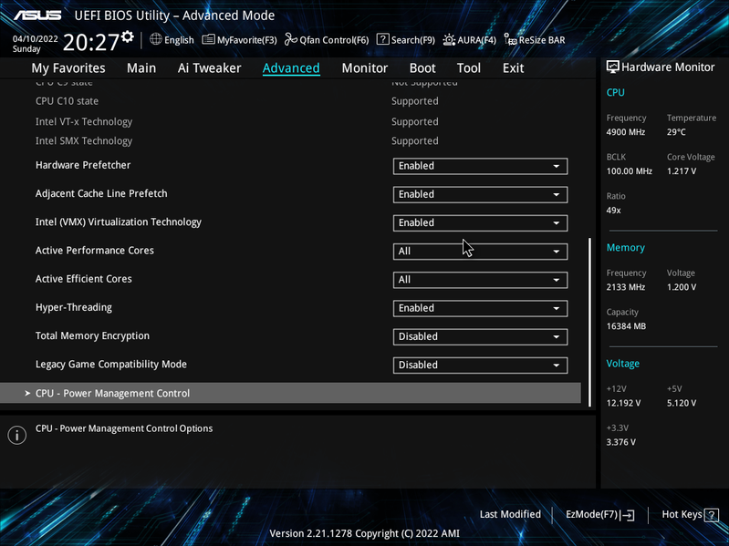 Как мы видим, автоматический разгон даже самого мощного на сегодня 12900К получился приличный: до 4,9/3,7 ГГц. При этом наша мощная СВО прекрасно справлялась с нагрузкой.