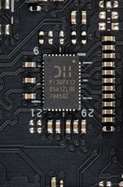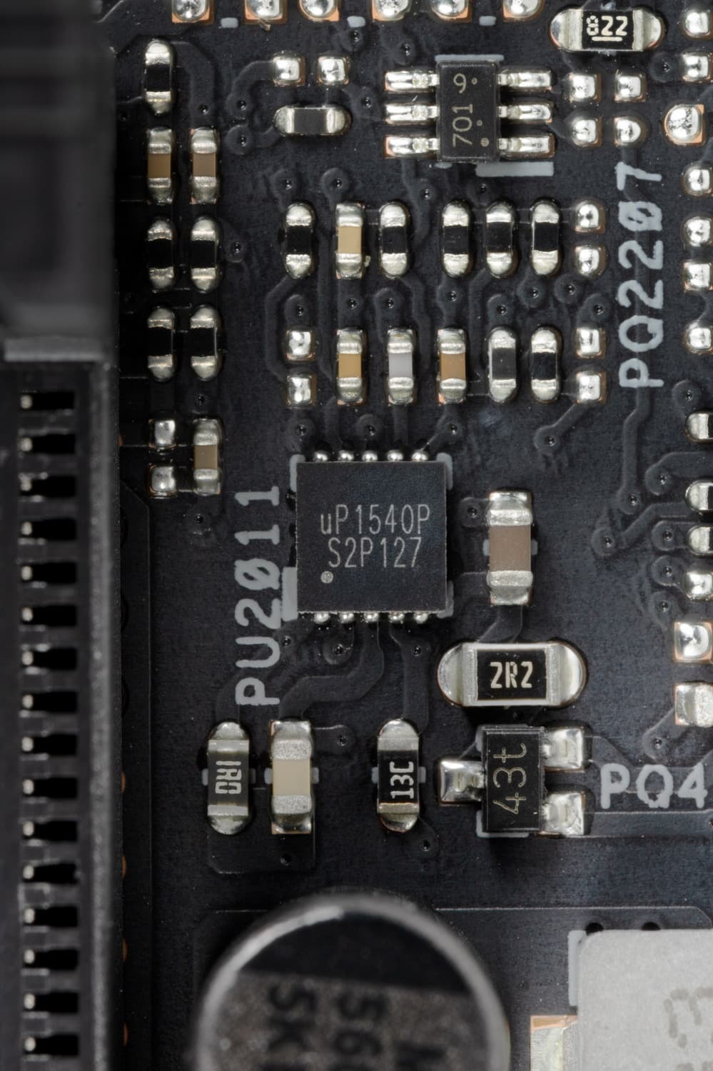 Самый быстрый USB порт Type-C (внутренний) оснащен ре-драйвером от Diodes Inc. Он же получил усиленное питание (через дополнительный разъем питания PCIe) для обеспечения быстрой зарядки мобильных устройств.