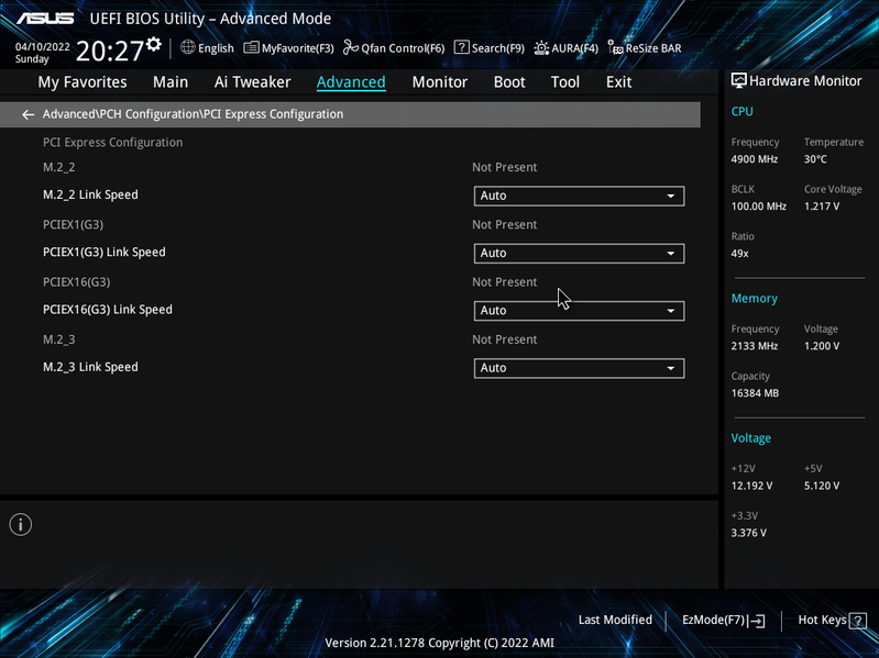 Теперь посмотрим выше на то, как работают процессоры в данной конфигурации. У CPU 12-го поколения всего 20 линий PCIe, 4 из них версии PCIe 4.0 отведены на порт М.2 (M2_1). Оставшиеся 16 линий PCIe 5.0 идут на единственный слот PCIe x16_1, поэтому вариантов переключений нет, как и мультиплексоров для этих целей.