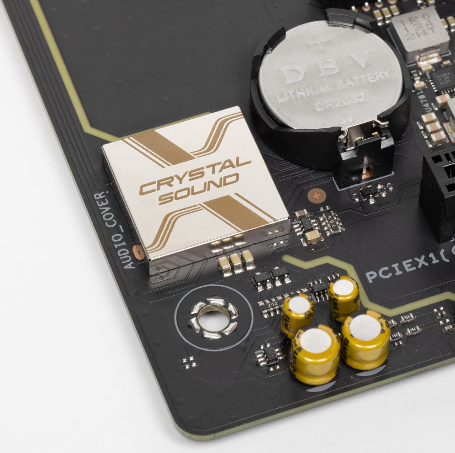 Много лет в большинстве современных материнских платах звуком заведуют аудиокодеки от Realtek семейства ALC, и долгое время это был ALC1220 (24 бит / 192 кГц), вот и сейчас под колпачком стоит именно он.